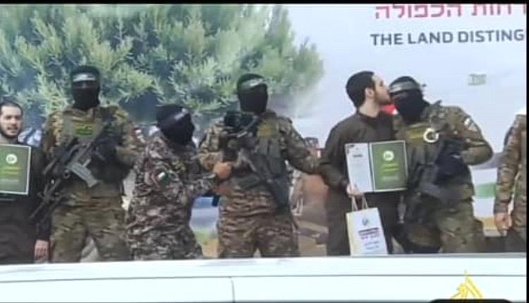 أقدم أحد الأسرى الإسرائيليين الثلاثة الذين أفرجت عنهم حماس اليوم السبت بإطار الدفعة السابعة من صفقة التبادل عل تقبيل رؤوس عناصر من كتائب القسام كانوا يرافقونه، في خطوة لافتة.