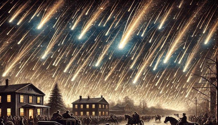 في ليلة الثاني عشر من نوفمبر عام 1833، شهدت سماء أمريكا الشمالية واحدة من أعظم زخات الشهب في التاريخ، حيث تساقط ما يصل إلى 100 ألف شهاب في الساعة. بدا المشهد وكأنه "مطر من النار"، مما أثار الذعر بين الناس، حتى أن الكثيرين اعتقدوا أنها علامة على نهاية العالم.
