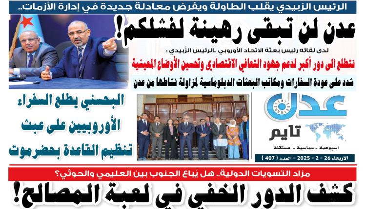 تصفح العدد الإلكتروني لـ #صحيفة #عدن_تايم الورقية .. عدد رقم 407