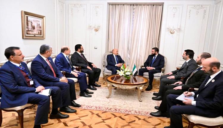 ونوه رئيس مجلس القيادة الرئاسي في اللقاء، بالتحولات التاريخية التي تشهدها سوريا، وإرادة شعبها في بناء دولته، وصنع مستقبله المشرق، معرباً عن تطلعه إلى عمل مشترك من أجل الدفع بالعلاقات الثنائية المتميزة نحو آفاق ارحب في مختلف المجالات، بما في ذلك تفعيل التمثيل الدبلوماسي بين البلدين الشقيقين.