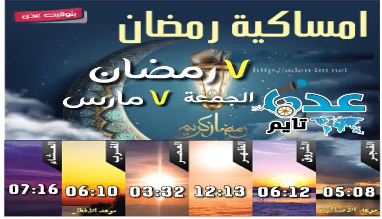 حسب التوقيت المحلي لمدينة عدن ليوم الجمعة
