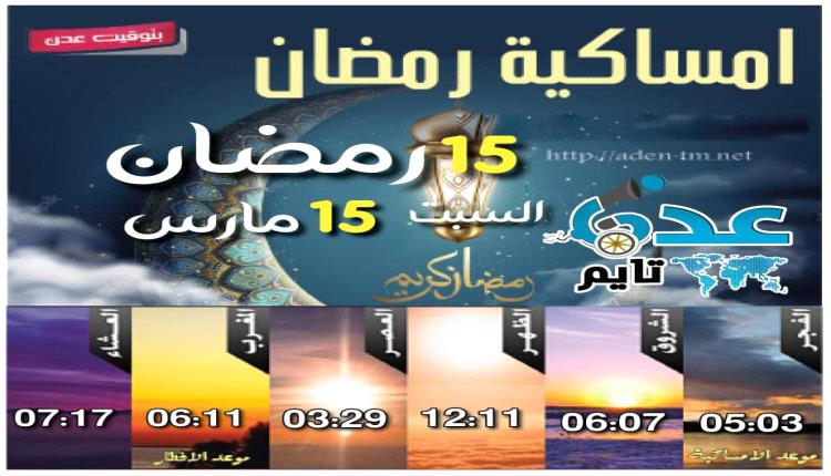 حسب التوقيت المحلي لمدينة عدن ليوم السبت