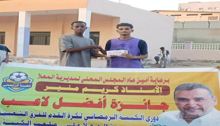 وبعد نهاية المباراة اختارت اللجنة المنظمة للبطولة لاعب فريق الكبسة(نواف عادل)كأفضل لاعب في المباراة وقد تسلم جائزته المستحقة من الكابتن عبدالرحمن محمود مدرب فريق الكبسة للفئات العمرية والمقدمة من راعي البطولة .