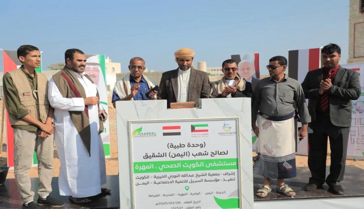 وضع وكيل أول محافظة المهرة، العميد دكتور مختار بن عويض الجعفري، ومعه وكيل الشؤون الفنية بالمحافظة، المهندس عوض أحمد قويزان، حجر الأساس لـمستشفى الكويت الصحي بمدينة الغيضة ، بتمويل من جمعية الشيخ عبد الله النوري الخيرية بدولة الكويت، وتنفيذ مؤسسة السبيل للتنمية الاجتماعية.