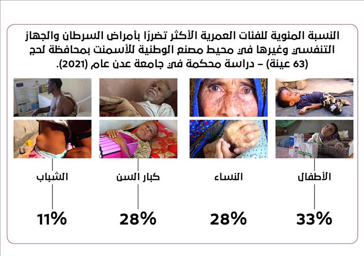 لكن شيماء ليست هي وحدها المصابة بالورم الخبيث، ووالدها ليس وحده المقتنع بوقوف مصنع شركة الوطنية للأسمنت، الذي تأسس في لحج بين 2006 - 2008، خلف ما أصاب أبنته.