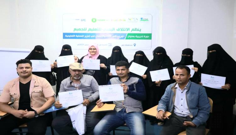 اختتم الائتلاف اليمني للتعليم للجميع يوم الاربعاء الدورة التدريبية حول "دور مجالس الآباء والأمهات في تعزيز العملية التعليمية"، والتي استمرت لمدة ثلاثة أيام 24-26 مارس ، بمشاركة 10 متدربين من ممثلي مجالس الآباء والأمهات في محافظة تعز.