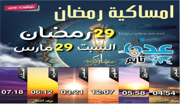 حسب التوقيت المحلي لمدينة عدن ليوم السبت