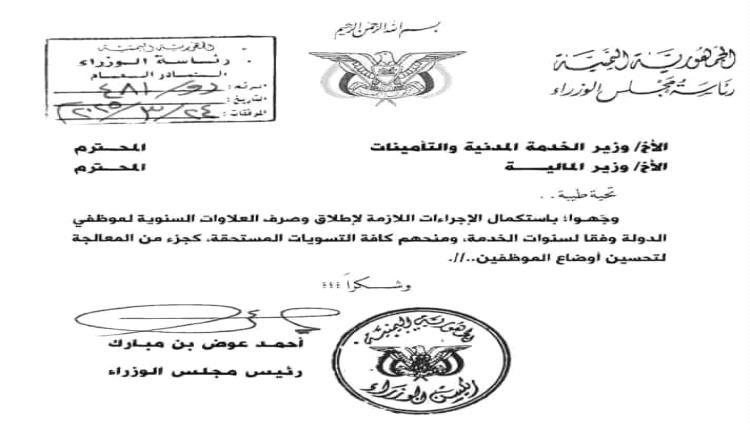 ورئيس حكومة وجه بزيادة مرتباتهم والعلاوات السنوية