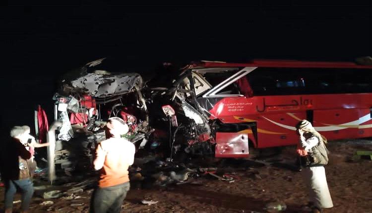 تفيد مصادر مسعفة إن حصيلة الوفيات والمصابين في حادثة تصادم حافلتين ركاب نقل جماعي بمفرق العبر بحضرموت قد ارتفعت الى 45 مابين متوفي ومصاب