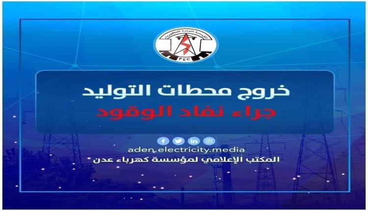 اعلنت المؤسسة العامة للكهرباء في العاصمة عدن عن توقف محطة الرئيس بترومسيلة عند تمام الساعة التاسعة من مساء اليوم، نتيجة نفاد كميات وقود النفط الخام المشغلة للمحطة.