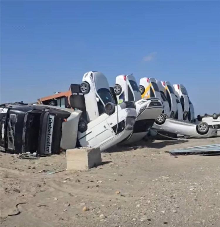 و كانت تحمل عشرات السيارات الحديثة موزعة على طابقين، فقدت توازنها بشكل مفاجئ وسط الطريق، ما أدى إلى انقلابها بالكامل وتعرض عدد كبير من المركبات لأضرار جسيمة.