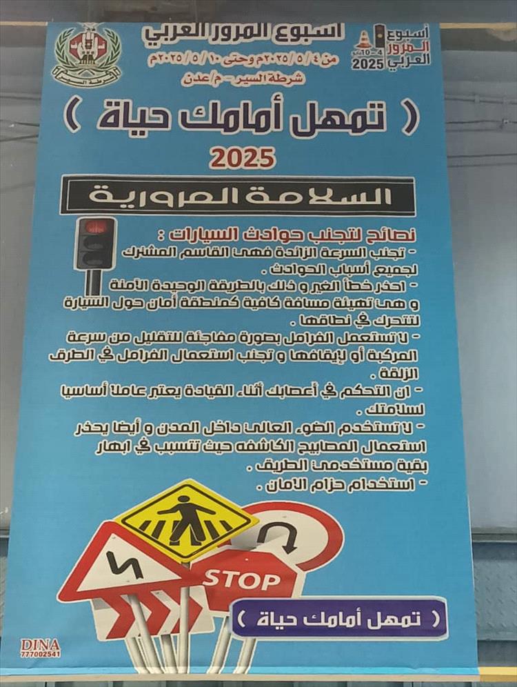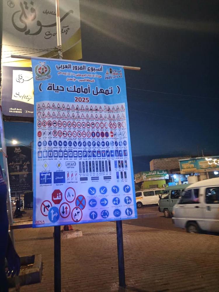 تواصل إدارة شرطة السير في العاصمة عدن تنفيذ الأنشطة والفعاليات التوعوية لأسبوع المرور العربي الموحد، الذي يأتي تحت شعار "تمهل أمامك حياة" لليوم الثالث على التوالي، تحت إشراف مباشر من قبل العميد عدنان قلعه مدير عام شرطة السير في العاصمه عدن.