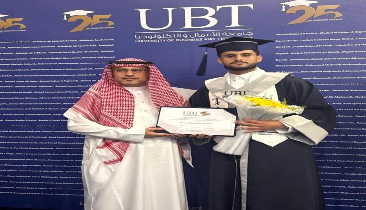 بأسـمى آيات التهاني والتبريكات، وبمناسبة تخرّج الشاب المجتهد رشيد طارق البكري من جامعة الأعمال والتكنولوجيا (UBT) في جدة، وحصوله على المركز الثالث على مستوى الجامعة بامتياز مع مرتبة الشرف، نتقدّم بكل فخر واعتزاز بأحر التهاني القلبية بهذا الإنجاز المشرّف.