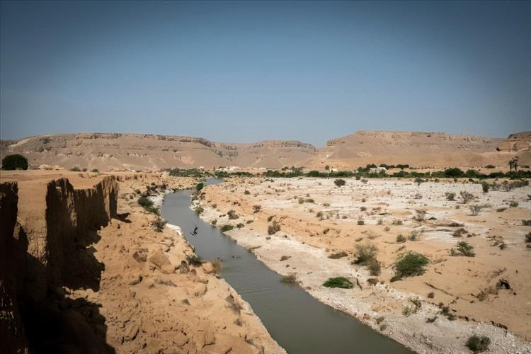 مجرى للسيول بالقرب من القطاع 10 النفطي - منطقة الغبيرة، أسفل وادي المسيلة بمحافظة حضرموت، فبراير 2014 (صورة حصرية لمركز سوث24)