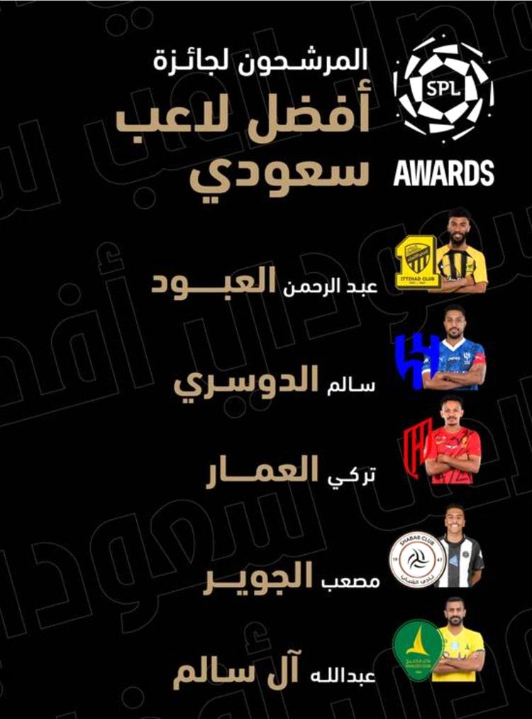كشفت رابطة الدوري السعودي للمحترفين، اليوم الإثنين، عن قائمة المرشحين لجائزة أفضل لاعب سعودي ضمن جوائز الموسم الرياضي 2024-2025.