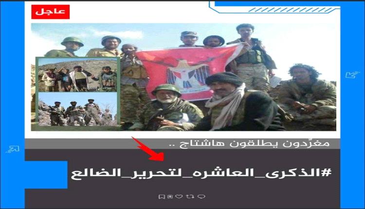 تزامنًا مع حلول الذكرى العاشرة لتحرير محافظة الضالع من قبضة ميليشيا الحوثي الإرهابية، أُطلق اليوم على مواقع التواصل الاجتماعي الهاشتاج: