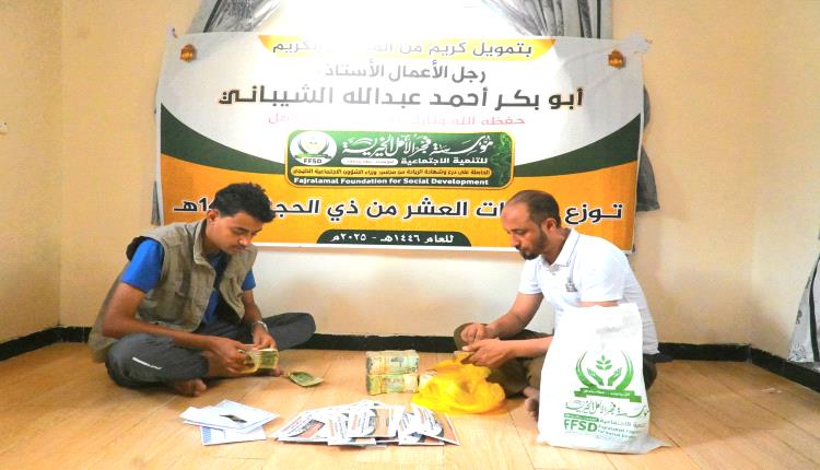 وزّعت مؤسسة فجر الأمل الخيرية للتنمية الاجتماعية صدقات العشر من ذي الحجة، وذلك بتمويل كريم من رجل الأعمال الأستاذ أبوبكر أحمد عبدالله الشيباني، على عدد من الأسر الفقيرة والمتعففة في بعض القرى والحارات بمحافظة تعز.