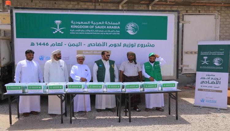 دشن مركز الملك سلمان للإغاثة والأعمال الإنسانية، مشروع توزيع لحوم الأضاحي في محافظة المهرة، ضمن مشروعه السنوي للعام 1446هـ/2025م، والذي تنفذه جمعية الوصول الإنساني، ويستهدف الأسر الأشد احتياجاً في عدد من المحافظات اليمنية، منها المهرة.
