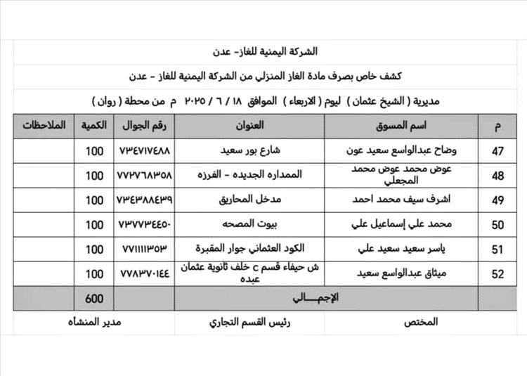 ويأتي هذا التوزيع للتخفيف من ازدحام المحطات، وتسهيل وصول الخدمة للمواطنين مباشرة في مناطقهم، بما يعزز من مستوى الانضباط في توزيع الغاز، ويقلل من حالات الاحتكار والتلاعب.