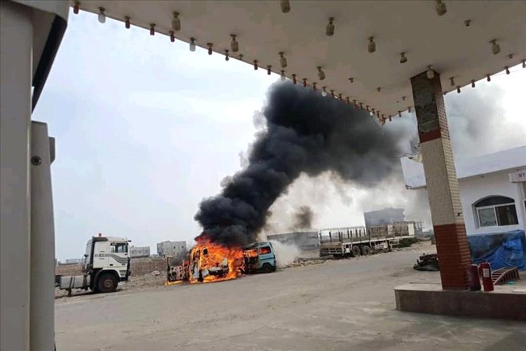 اندلع حريق قبل قليل في منطقة الممدارة بالعاصمة عدن، أمام محطة وقود "الخير"، ما أدى إلى احتراق باصين بشكل كامل.