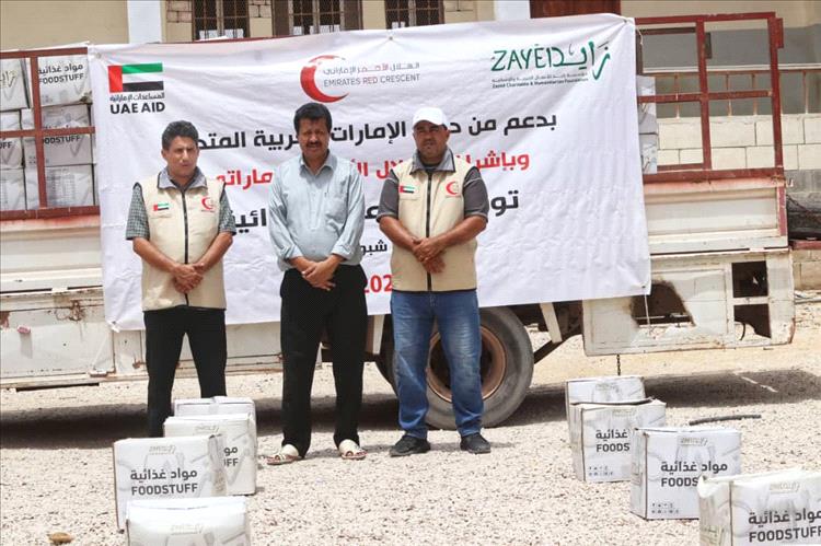 وزعت هيئة الهلال الأحمر الإماراتي بالتعاون مع مؤسسة زايد للأعمال الخيرية والإنسانية الاثنين، 300 طرد غذائي على الأسر الأشد فقراً في مديرية رضوم جنوب محافظة شبوة.