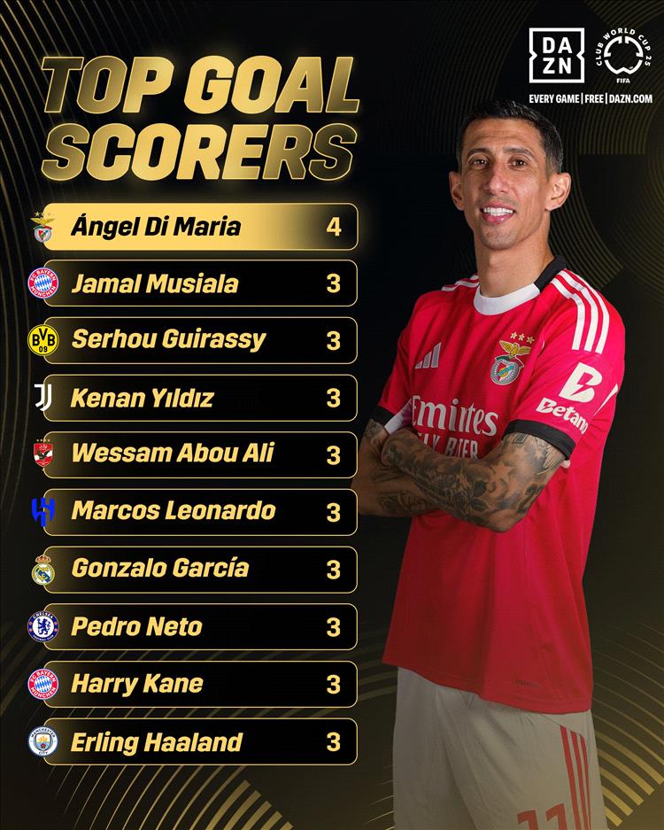 ويتصدر النجم الأرجنتيني المخضرم أنخيل دي ماريا (37 عاما) مهاجم فريق بنفيكا البرتغالي، ترتيب الهدافين بـ4 أهداف رغم خروج فريقه من دور الستة عشر عقب خساالاته أمام تشيلسي (1-4).