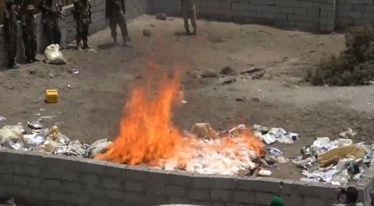 وتمت عملية إتلاف المخدرات بإحراق مادتي الشبو ومادة الحشيش بمقر النيابة الجزائية المتخصصة بالعاصمة عدن، وتمت عملية إتلاف مادة الهروين بالساحل عن طريق إذابتها وإغراقها بمياه البحر.