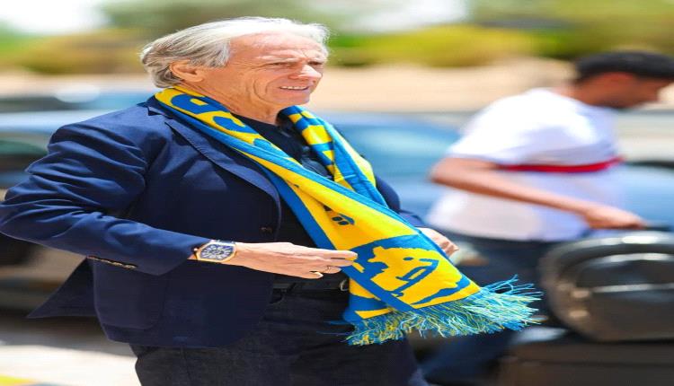 وظهر المدرب البرتغالي صاحب الـ 70 عاما مرتديا وشاح النصر ذو اللون الأصفر المميز، بعد ظهوره لنحو عامين باللون الأزرق المميز للهلال.