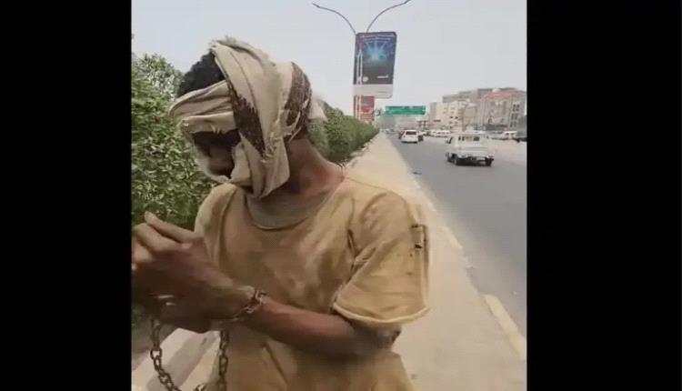 في مشهد غامض ومخيف أثار الذهول في مدينة عدن، فوجئ المارة بشخص يُعتقد أنه مواطن يمني يسير مكبلا بسلاسل حديدية ثقيلة في منطقة "خط السهل" بمديرية "دار سعد"، متجهاً نحو محافظة لحج.