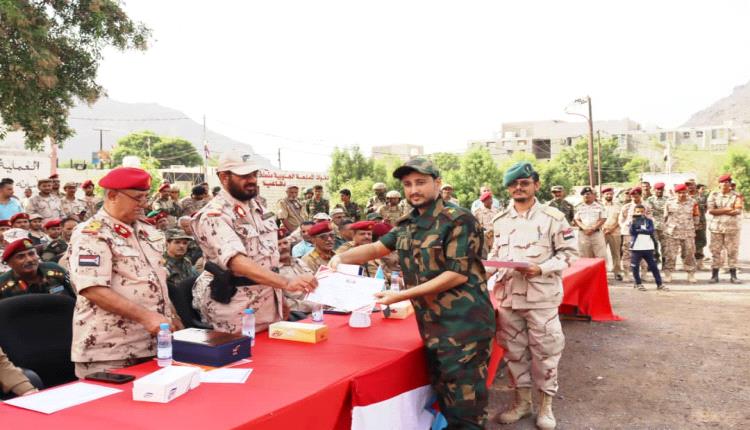 وحضر الحفل عدد من القيادات العسكرية والأمنية البارزة، يتقدمهم العميد الركن علي حسن الجهوري، نائب رئيس هيئة الركن، والعميد الركن عبدالعزيز الهدف، أركان القوات البرية الجنوبية ،قائد اللواء الثاني مشاة، إلى جانب العميد محسن الوالي، القائد العام لقوات الحزام الأمني، وكوكبة من الضباط والمسؤولين العسكريين.