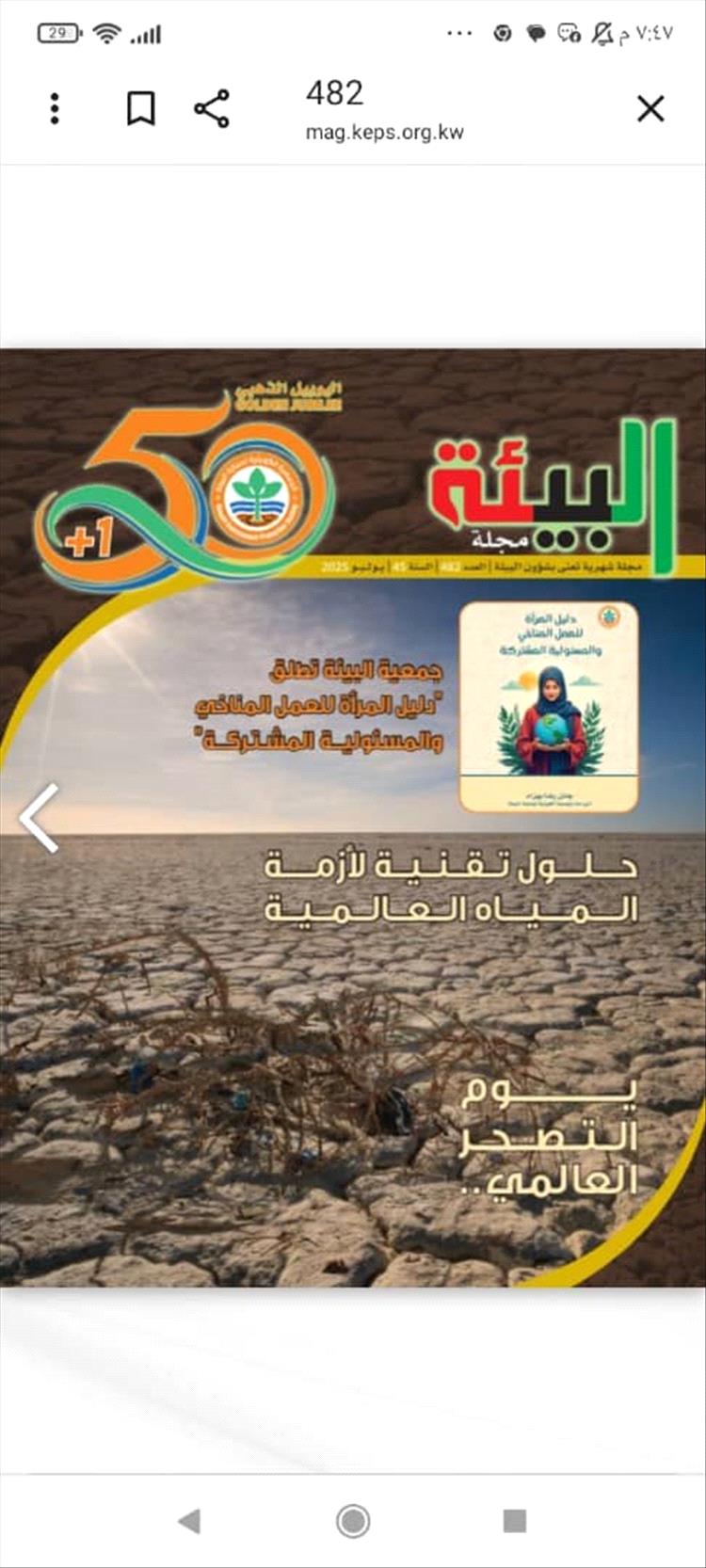 أعلنت الجمعية الكويتية لحماية البيئة ضم الاستاذ عبد الحكيم محمود كعضو في هيئة تحرير مجلة البيئة العدد 482 السنة 45 والصادرة في يوليو 2025