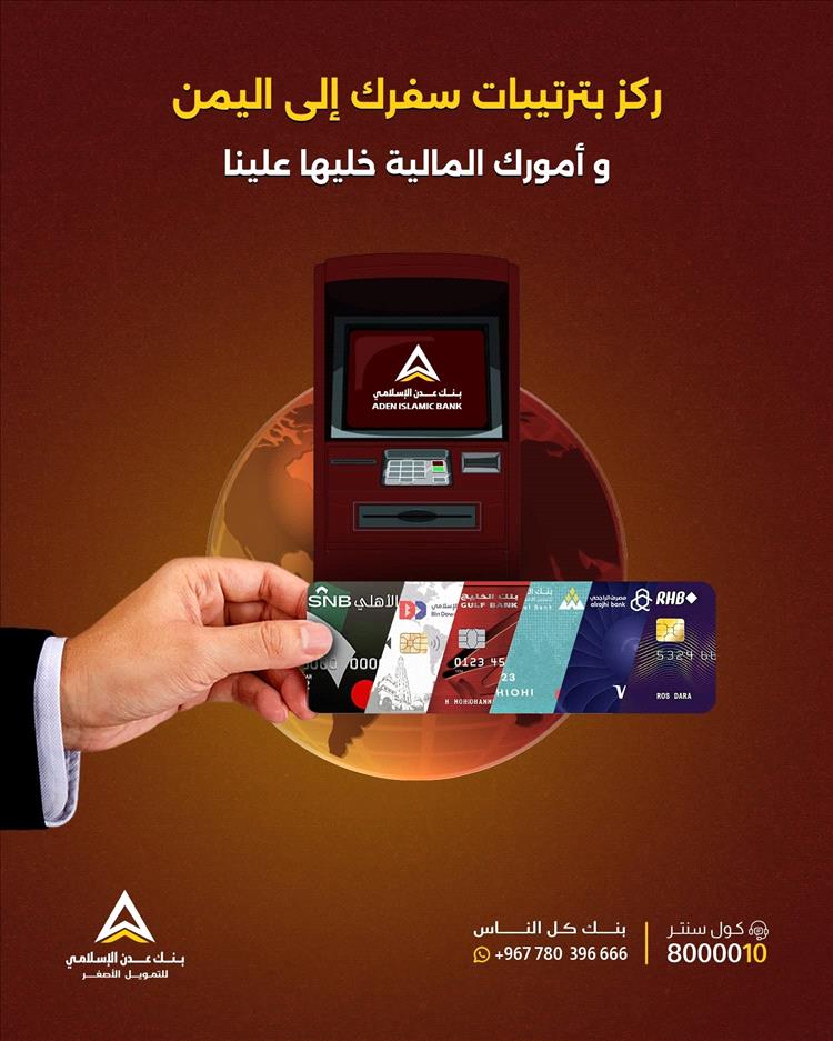 أعلن بنك عدن الإسلامي للتمويل الأصغر عن إطلاق خدمة جديدة تمكّن العملاء، سواء كانوا يمنيين أو غير يمنيين، ومقيمين داخل اليمن أو قادمين من الخارج، من سحب أموالهم من أي بطاقة ماستر كارد، سواء كانت محلية أو دولية، عبر صرافاته الآلية.
