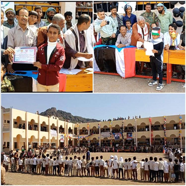 كما جرى خلال الحفل تكريم العديد من الشخصيات ومديرة المدرسة والمعلمين والطلاب المبرزين في التعليم وبالأنشطة الرياضية والفكرية والثقافية بالشهادات التقديرية والكؤوس، كما تم تكريم الجريح علي فؤاد حسن الحوشبي أحد أبطال القوات المسلحة الجنوبية الذي أصيب وبترت قدميه خلال مواجهته لمليشيات الحوثي في مديرية حريب.