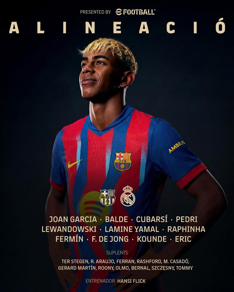 أما برشلونة، فيهاجم بالقوة الضاربة، في وجود الثلاثي لامين يامال ورافينيا وروبرت ليفاندوفسكي.
