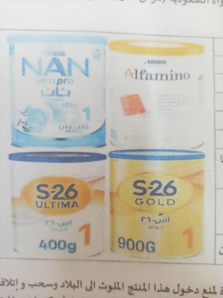 بناء على مذكرة الوزارة المؤرخة في 2026/1/12م واستنادا الى توجيهات وزير الصناعة رقم 8 والمؤرخة في 2026م بشأن سحب منتجات حليب الاطفال ماركة ALFamin0(NAN) ) GOLD_S_26)(Ultma) والتي تحتوي على سموم.