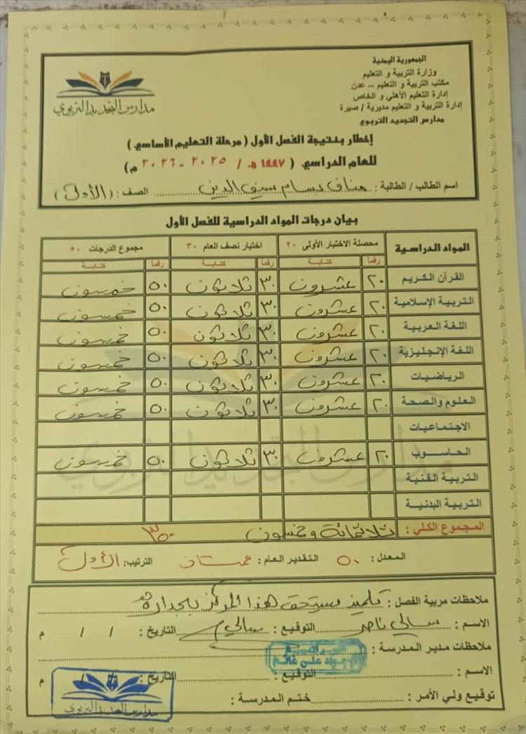 تهنئة خاصة ل مناف بسام بمناسبة حصوله على المركز الأول! 🎉 "عائلة باهارون تتقدم بأحر التهاني والتبريكات لحصولك على المركز الأول، نتمنى لك دوام التفوق والنجاح 🎉"
