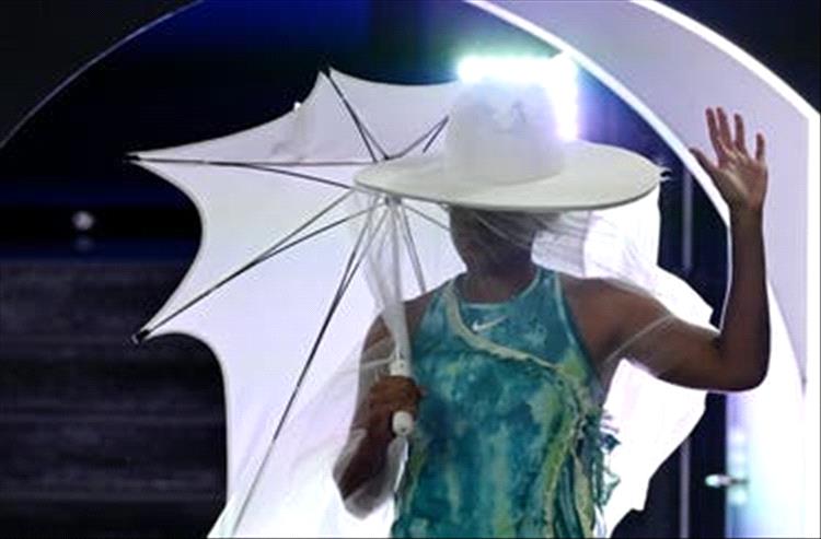وحولت اللاعبة المصنفة أولى عالميا سابقا والفائزة مرتين ببطولة أستراليا المفتوحة، الملعب الرئيسي إلى منصة عرض أزياء، وأثارت دهشة الجمهور عندما دخلت مرتدية زيا مستوحى من قناديل البحر وبإطلالة مفعمة بألوان زاهية، وهي تحمل مظلة بيضاء وقبعة عريضة الحواف مطابقة لها وترتدى قميصا مستوحى من ملابس البحر زينته بأشرطة صفراء فاتحة على الأكمام.