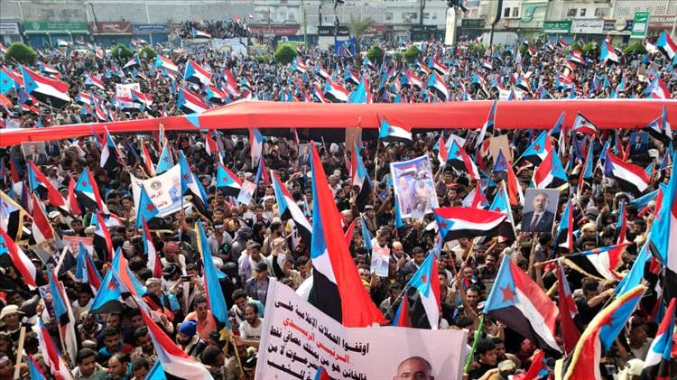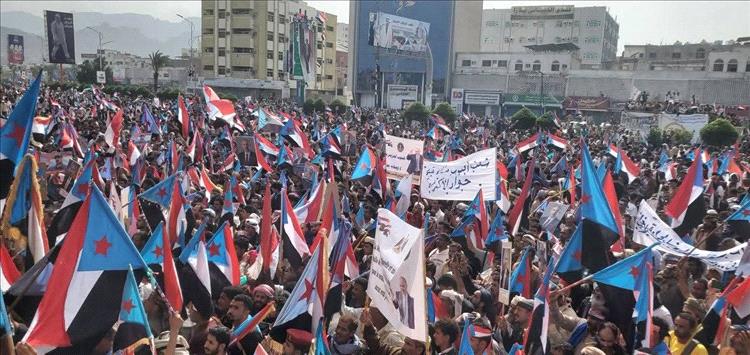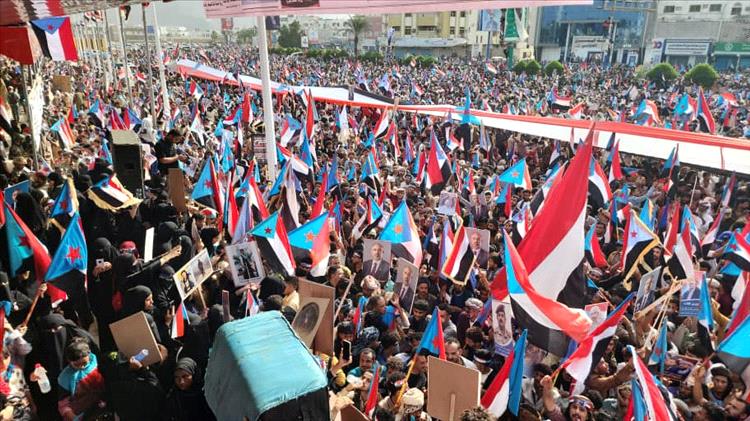 وتظهر الصور حشود المتظاهرين في ساحة العروض بالعاصمة عدن.