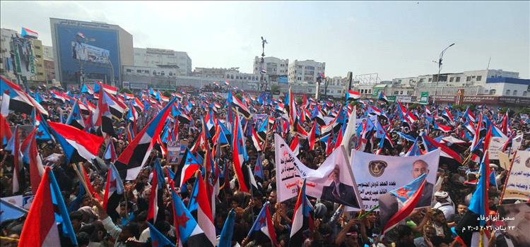 تشهد ساحة العروض في العاصمة عدن، في هذه الأثناء، احتشادًا جماهيريًا كبيرًا تزامنًا مع انطلاق مليونية "الثبات والتصعيد الشعبي" التي دعا إليها رئيس المجلس الانتقالي الجنوبي عيدروس الزبيدي، للتأكيد على تجدد التمسك بالدولة الجنوبية.