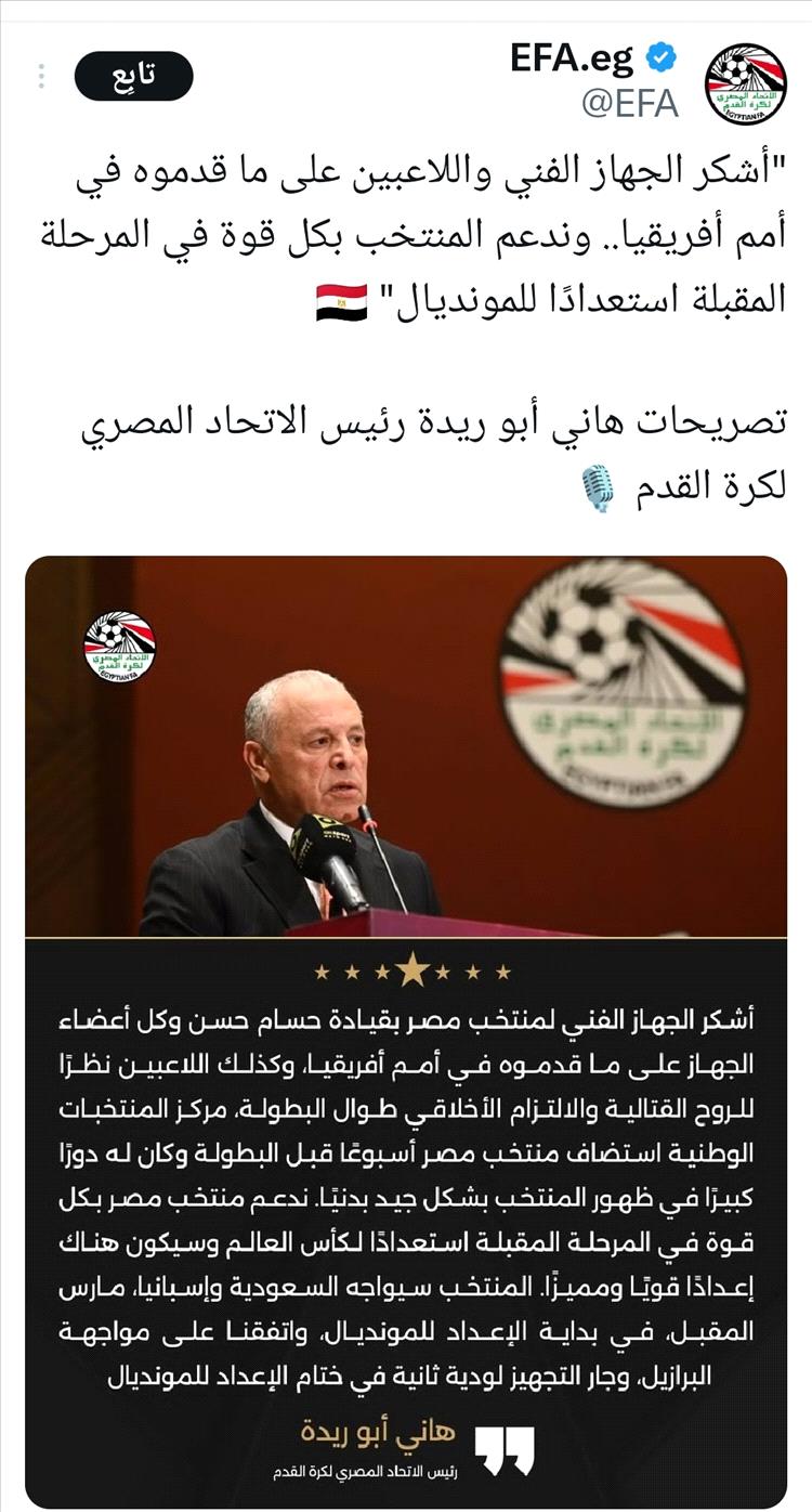المصدر: الاتحاد المصري لكرة القدم