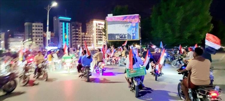 انطلقت مساء اليوم الأحد، عقب صلاة المغرب، مسيرة جماهيرية حاشدة بالدراجات النارية والسيارات من ساحة القرار قرارنا بمدينة المكلا، وجابت عددًا من أحياء المدينة، في مشهد شعبي واسع عبّر عن الموقف الوطني لأبناء المدينة.