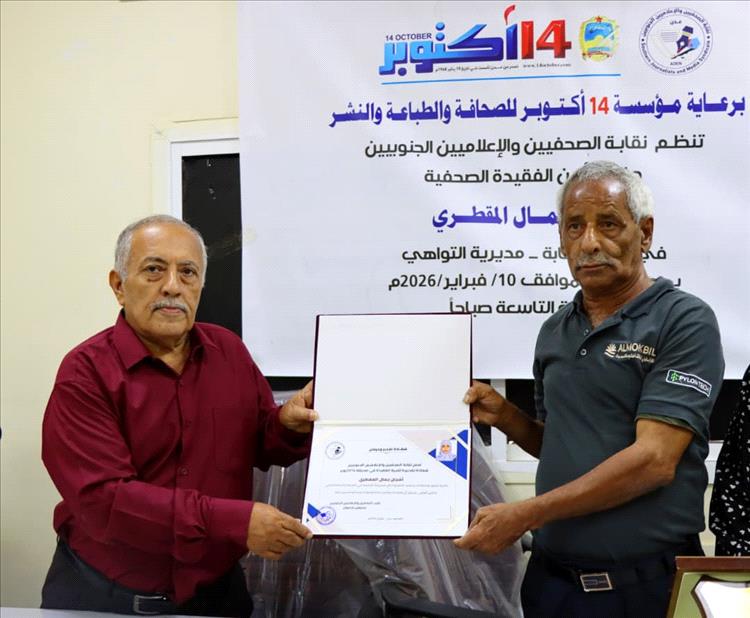 برعاية مؤسسة 14 أكتوبر للصحافة والطباعة والنشر، نظّمت نقابة الصحفيين والإعلاميين الجنوبيين، صباح اليوم الثلاثاء الموافق 10 فبراير 2026م، حفل تأبين للفقيدة أشجان جمال المقطري، في فعالية إنسانية مؤثرة خيّم عليها الحزن والوفاء، واستحضرت سيرة صحفية تركت أثرًا عميقًا في وجدان زميلاتها وزملائها وفي بلاط صاحبة الجلالة.