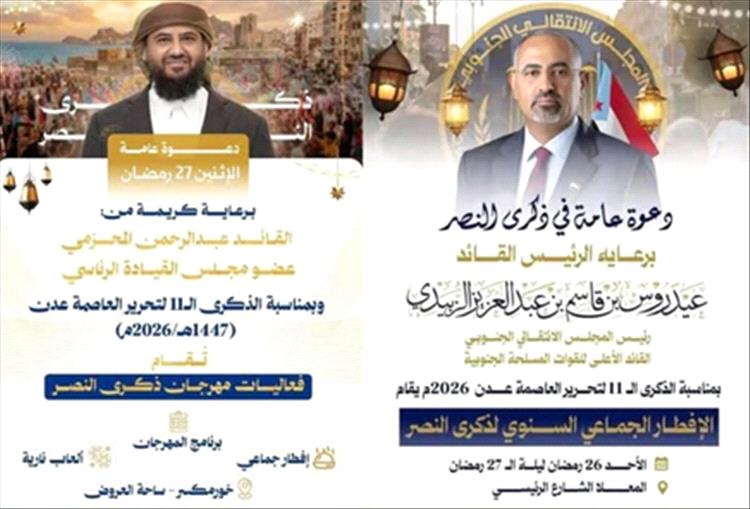 ارتدت العاصمة عدن حلتها الأبهى، وتزينت شوارعها وساحاتها بروح الفخر والاعتزاز، احتفاءً بالذكرى الحادية عشرة لتحريرها من مليشيات الحوثي الإرهابية، الذكرى التي لم تعد مجرد تاريخ عابر في التقويم، بل تحولت إلى أيقونة للصمود الشعبي، حيث اختلطت مشاعر الفرح بعبق الروحانيات الرمضانية، مستحضرةً تلك اللحظات التاريخية من "النصر المبين" الذي تحقق في قلب ليالي العشر الأواخر من رمضان، لتعيد للأذهان مشهد الحرية الذي تنفسته العاصمة بعد حصار ومعاناة.