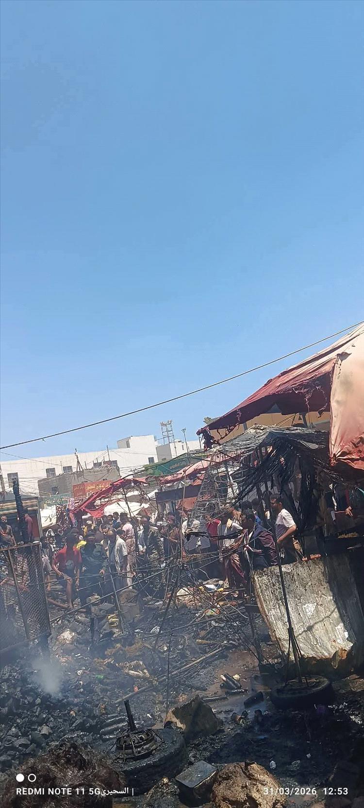 تمكنت فرق الإطفاء والمواطنون، اليوم، من السيطرة على حريق هائل اندلع في سوق الفيوش، مما أسفر عن خسائر مادية كبيرة في الممتلكات والمحلات التجارية، دون تسجيل أي خسائر بشرية ولله الحمد.