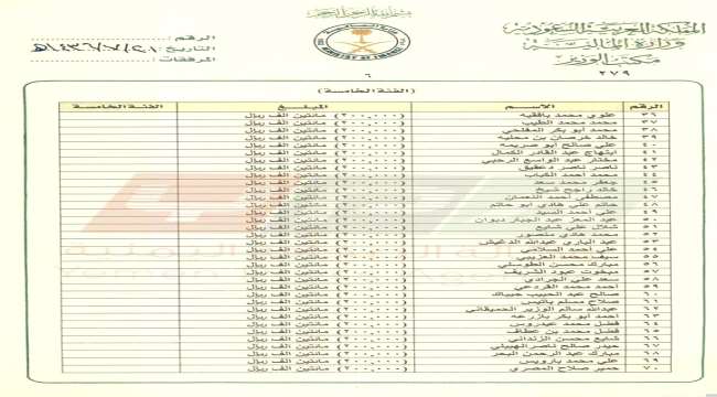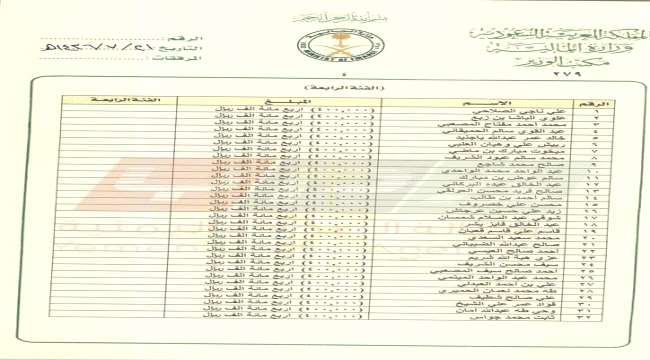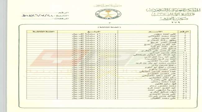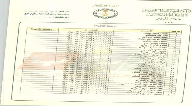 كشوفات بمكرمات لكبار المسؤولين اليمنيين مابين مليون ريال سعودي الى 200الف ريال سعودي"وثائق"