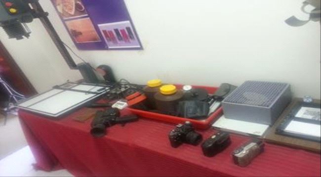 وجهاز طبع وتحميل الصور مرفق أيضا بأوعية تحميض الأفلام آنذاك وهي هدية من الأستاذ علوي علي الصياد .