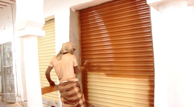 نسبة الانجاز في المشروع 94% اثنى تجوالي في وسط السوق ومتابعة سير العمل كان متواجدا المهندس / عبدالهادي عوض مدهش مشرف مقيّم للمشروع من قبل الصندوق الاجتماعي للتنمية الذي اوضح بأن نسبة انجاز العمل بلغت 94% وبرغم ذلك نواجه عرقلة من بعض أصحاب الدكاكين في عملية الترميمات لمحلاتهم ومحم في المراحل الأخيرة منه افتا بقوله : كما تلاحظ ان العمل يسير على قدم وساق كل في مجاله سوى تشطيب المباني او تلوين ابواب المحلات وفقا وما يتناسب باللون الخشبي للأبواب التراثية ويتبقى فقط الرصيف وامتدادات الكهرباء , عاقل السوق والمطالبة بتنفيذ الوعود