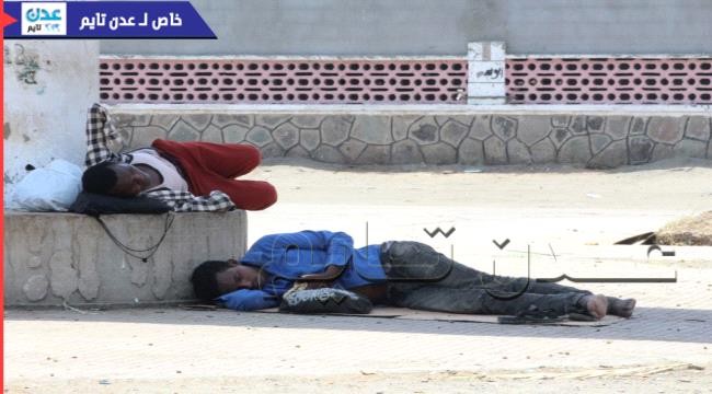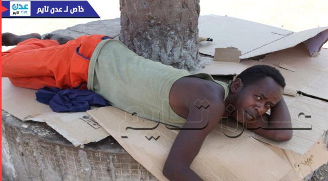 ورصدت عدسة" عدن تايم" عشرات الافارقة في جولة القاهرة بمديرية الشيخ عثمان، حيث يتخذون من حديقة عامه مقر لإقامتهم.
