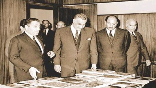 عبد الناصر والسادات في مكتب هيكل بالأهرام