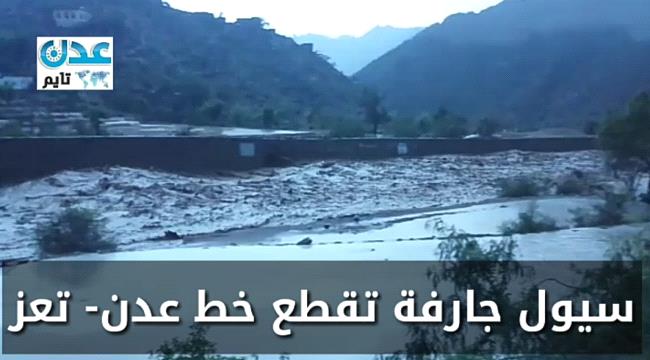 فيديو/ سيول جارفة تقطع خط عدن - تعز